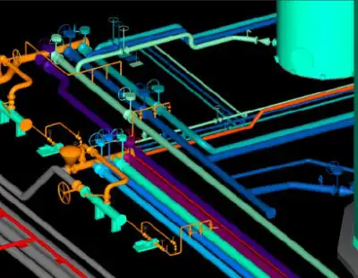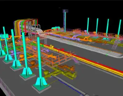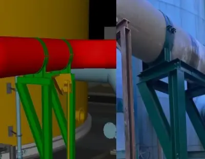 The project was divided into two parts. Our involvement focused on exporting models of steel structures, piping, and pressure vessels for stress analysis.